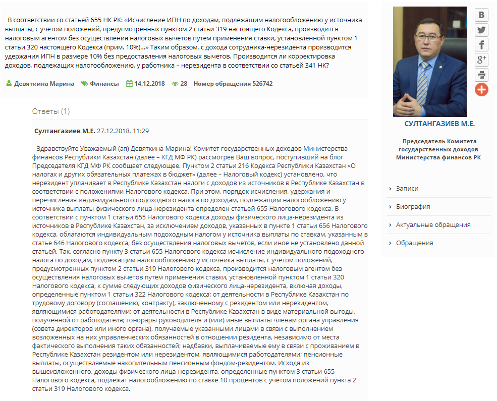 статьи 319 Налогового кодекса, производится налоговым агентом без осуществления налоговых вычетов путем применения ставки, установленной