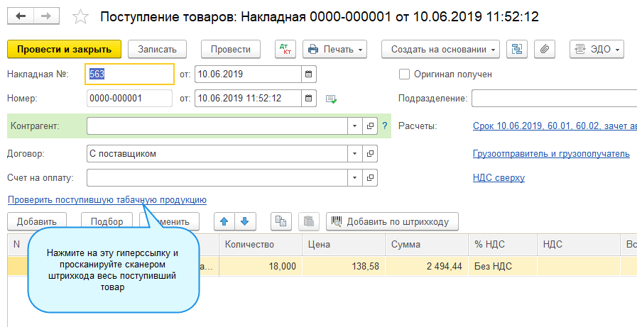 2. Подключите электронный документооборот и настройте его для покупателей и поставщиков табачной продукции. Документы поступления и реализации оптом,