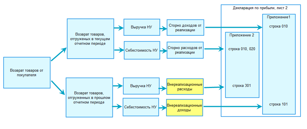 Для целей исчисления налога на прибыль при возврате товаров, реализованных в прошлом налоговом периоде, сумма выручки отражается, как убыток прошлых