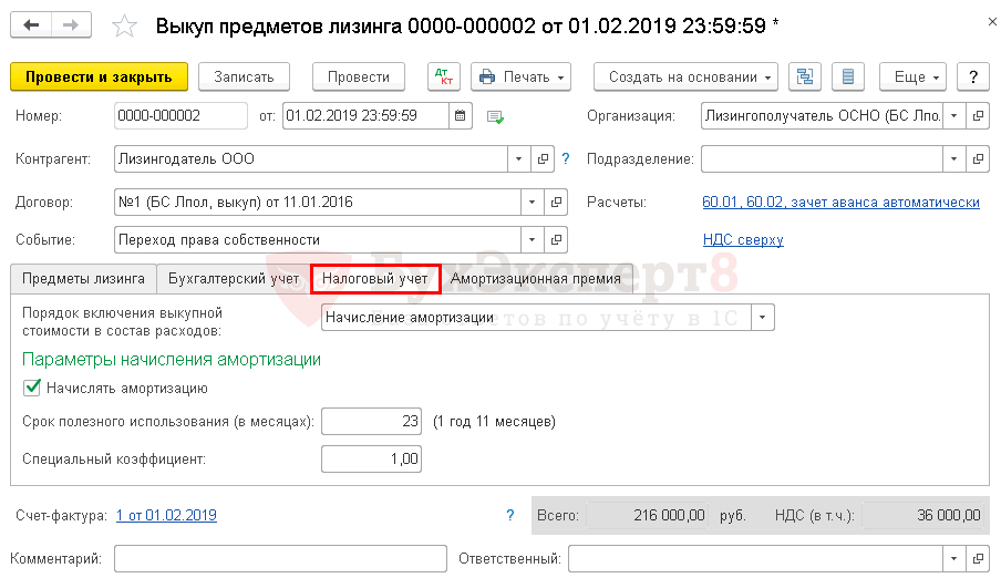 Начисление НДС с выкупной стоимости