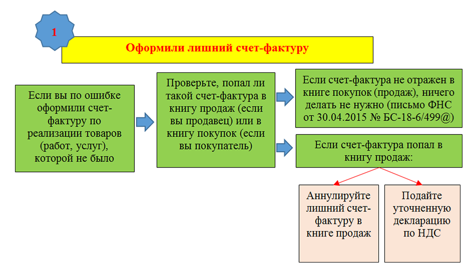 Начнем с такой ошибки, как необоснованное оформление счета-фактуры при отсутствии фактической реализации — такая ошибка завышает сумму налога к уплате: