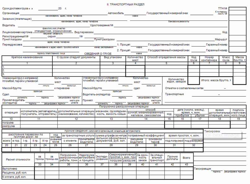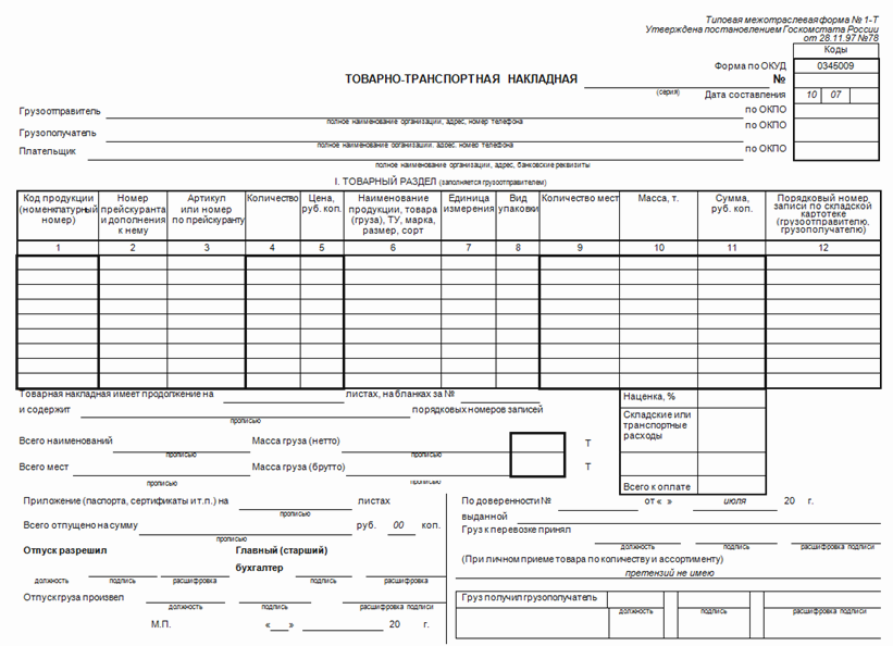 Для учета движения товара и расчета за их доставку автотранспортом формируют Товарно-транспортную накладную (форма 1-Т).
