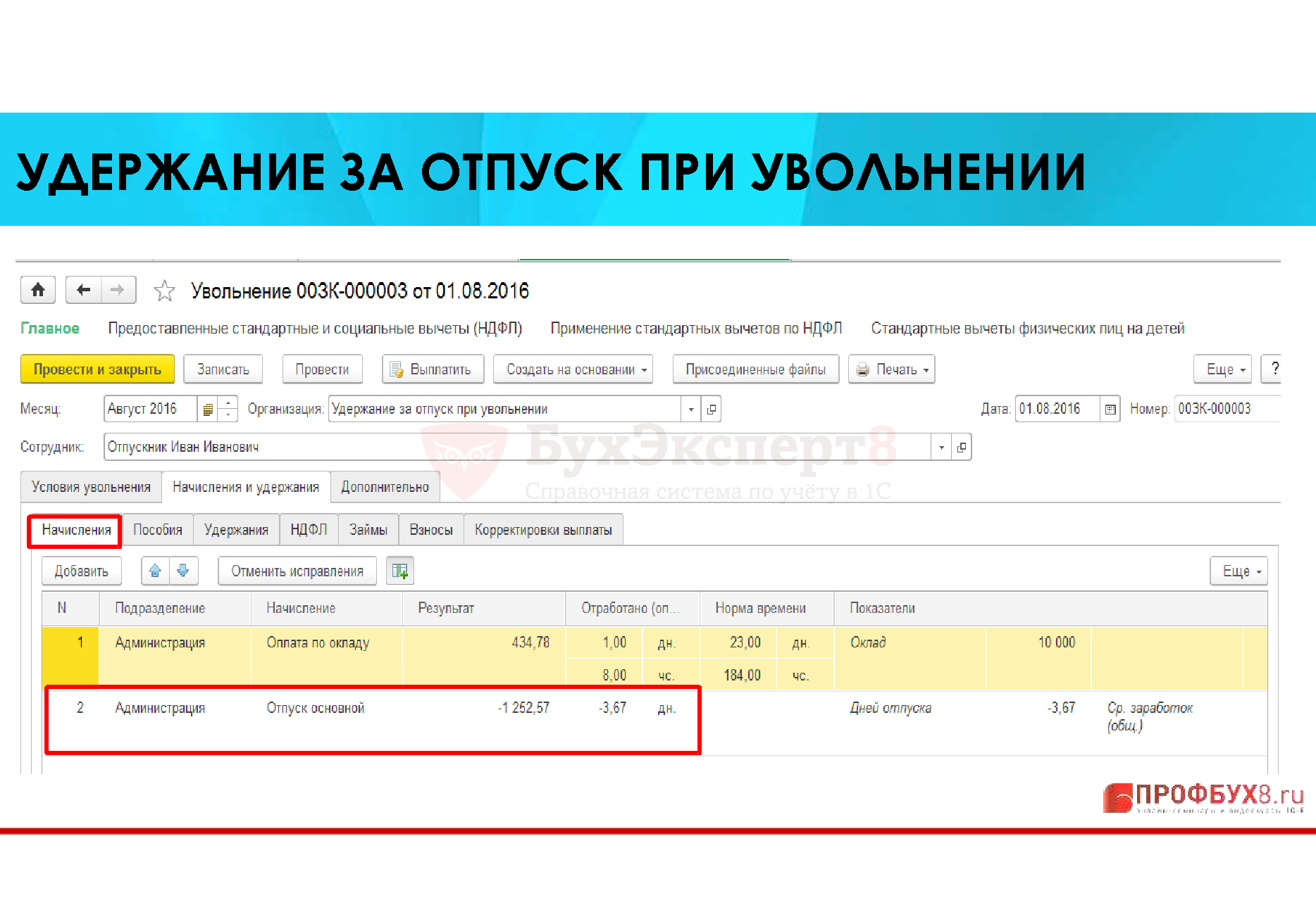 Суммы удержанного отпуска влияют на расчеты по страховым взносам, НДФЛ и налогу на прибыль.