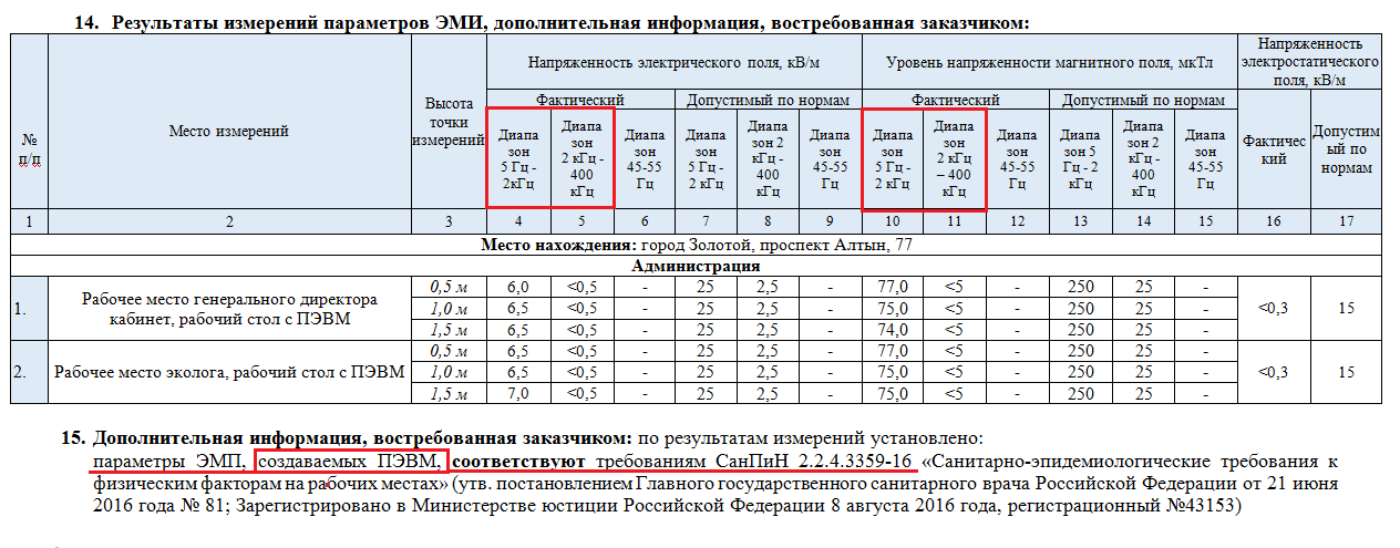 Обращаем внимание, что в новой формулировке п. 3.2.2.4 компьютер не указан, как единственный источник ЭМП, но указан диапазон (5 Гц — 2 кГц, 2 кГц — 400 кГц)
