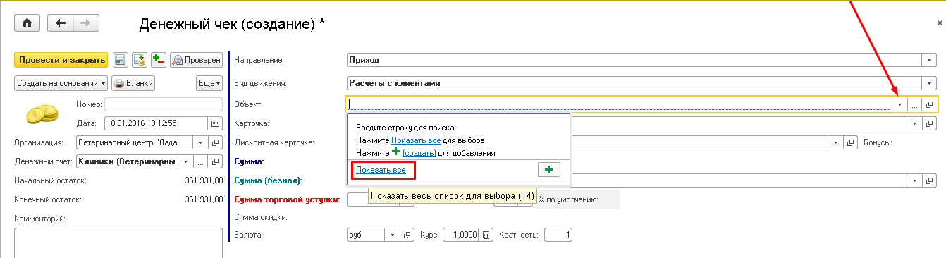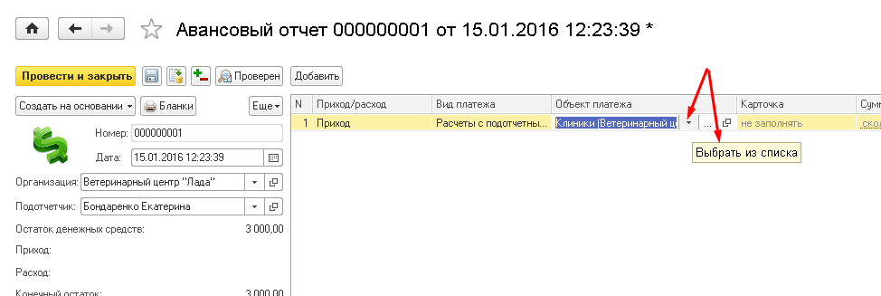Объект — это сотрудник которому выдают деньги из кассы под отчет. Его выбираем из списка контрагентов (Рис.6,7).