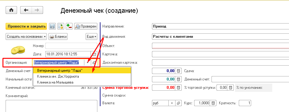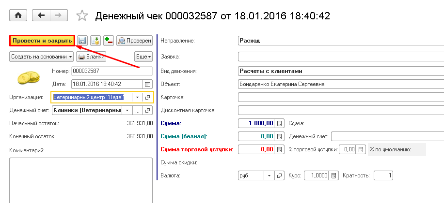 После заполнения документа нажмите кнопку «Провести и закрыть» (Рис.11).