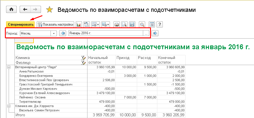 Рис.37 Указываем нужный период и нажимаем «Сформировать»