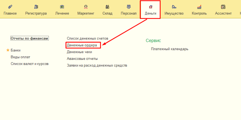 Откройте раздел Деньги -> Денежные ордера (Рис.13)