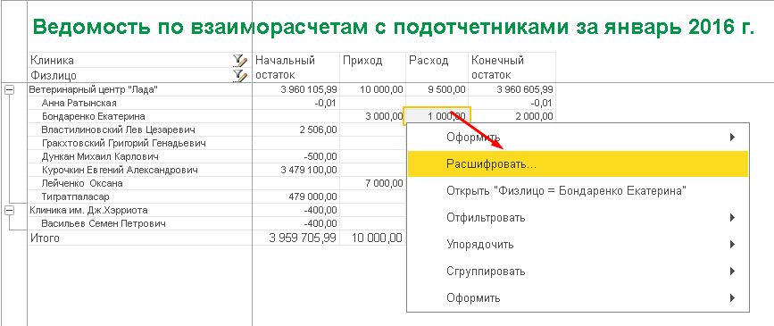 Чтобы расшифровать любую сумму в отчете, кликните мышкой по этой сумме (Рис.38).