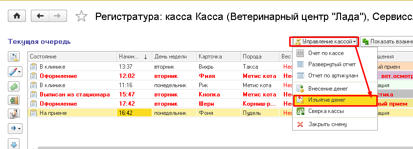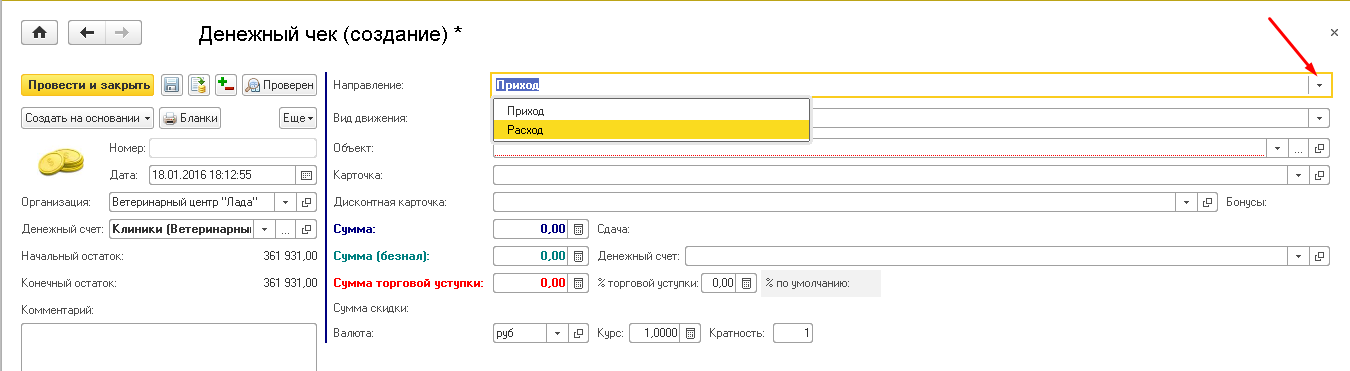Заполнение чека на изъятие так же как и на (Рис.23).