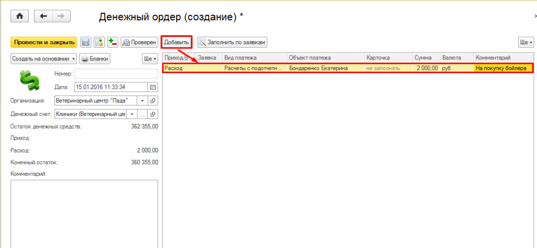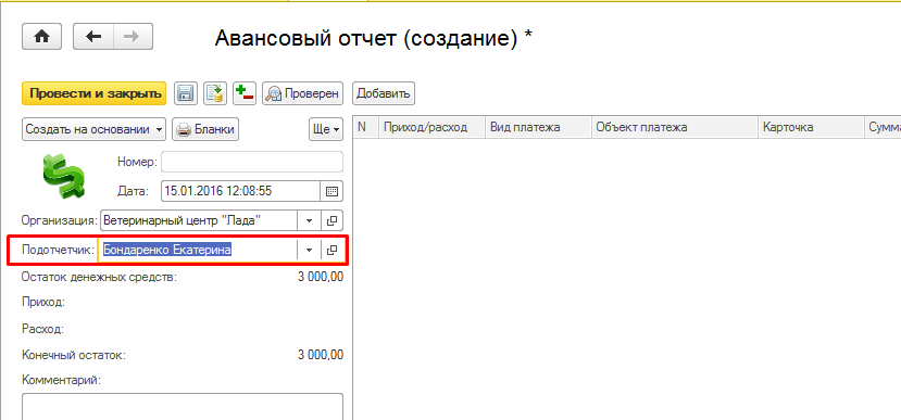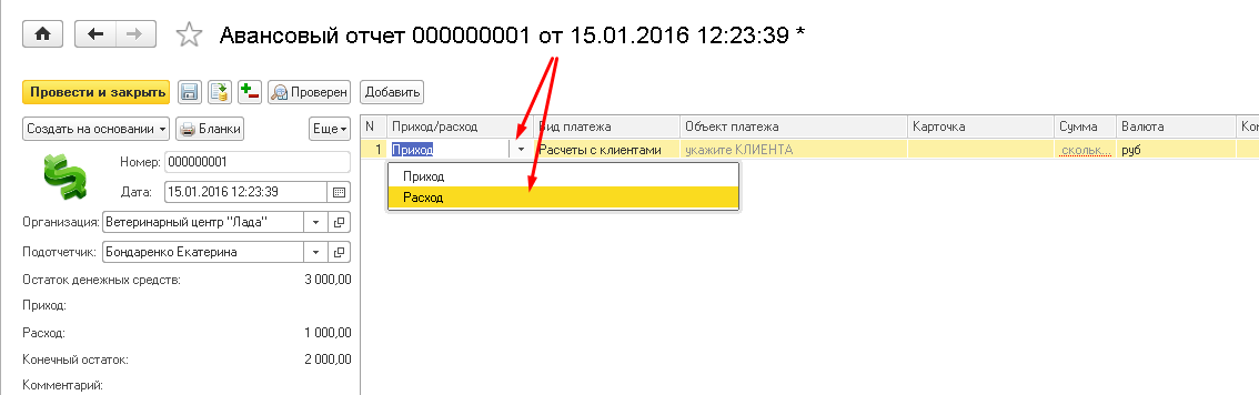 Рис.16 Выдаем деньги под отчет Авансовым отчетом