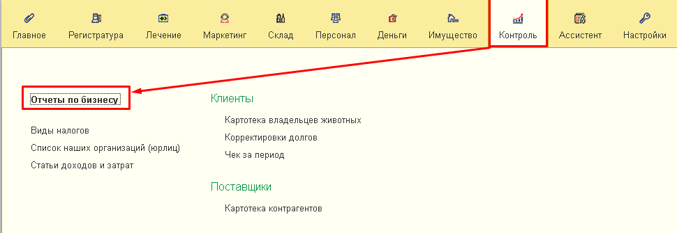 Откройте любую подсистему программы и перейдите в Отчеты по бизнесу (Рис.35).