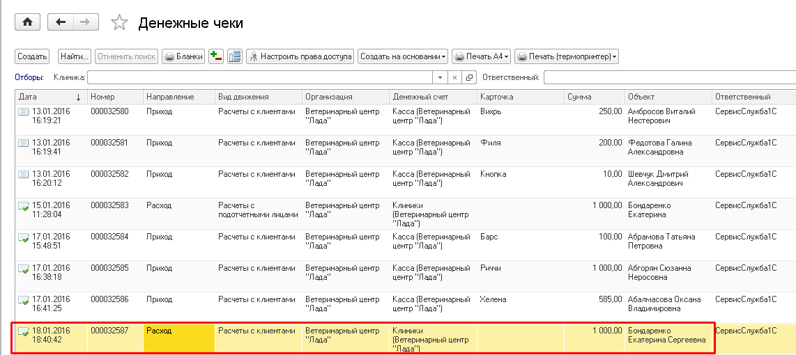 Документ будет отражаться в журнале денежных чеков так (Рис.12).