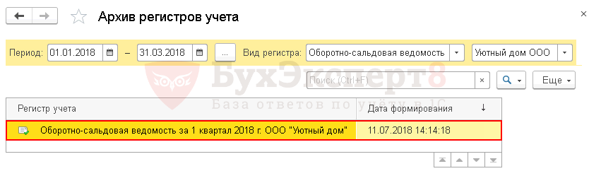 Сформированную ОСВ можно сохранить в электронный архив, который располагается внутри базы 1С. Это позволит в будущем вернуться к ведомости за прошлые годы без повторного ее формирования в программе.