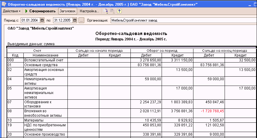 Документ содержит в себе сальдо на начало периода и данные оборотам счетов. Производя расчеты, бухгалтер может определить сальдо на конец периода