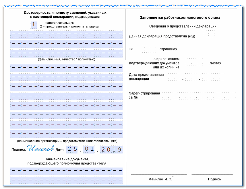- Декларация подписывается физлицом, а от организации — ее руководителем, или представителем.