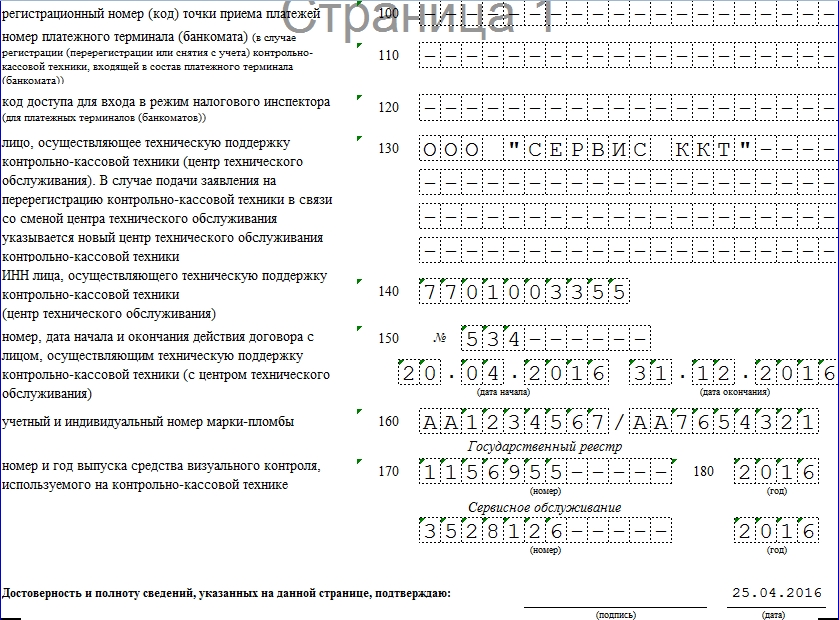 Каждая станица заявления о регистрации или перерегистрации контрольно-кассовой техники должна быть подписана и проставлена дата.