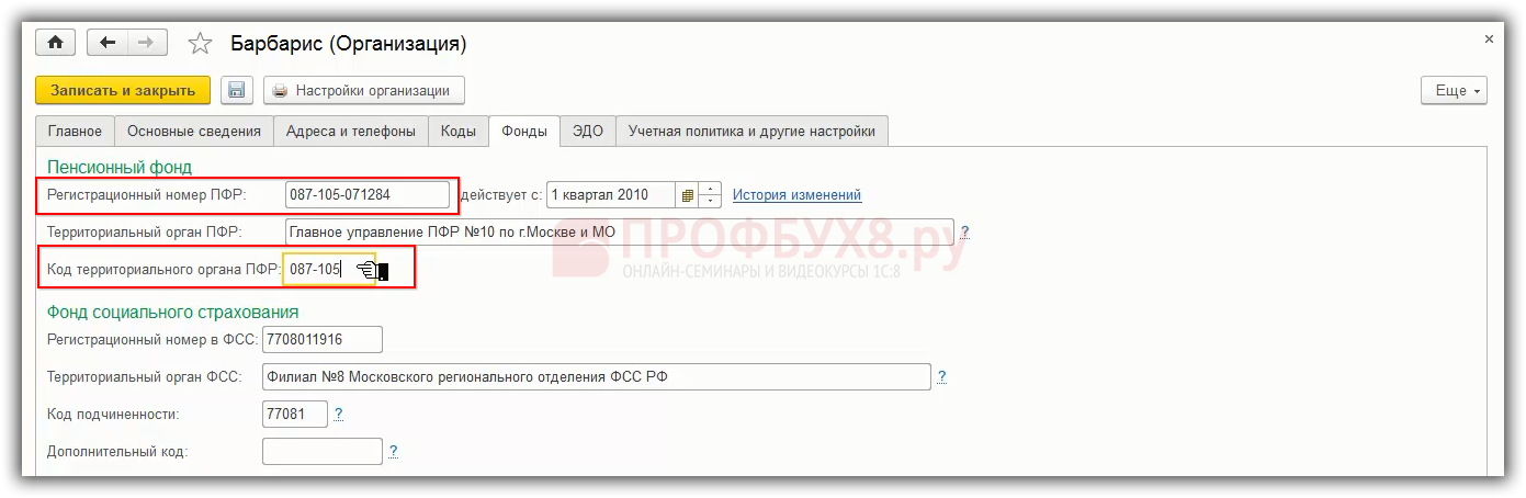 В настоящее время в программах 1С встроена проверка, поэтому при выгрузке файла программа 1С подскажет, что не заполнены поля и необходимо ввести код органа ПФР: