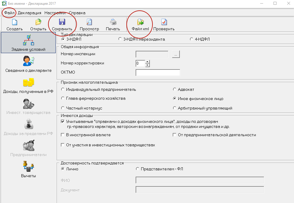 Далее в таблице показано, как сохранить 3-НДФЛ из программы ФНС с помощью этих опций.