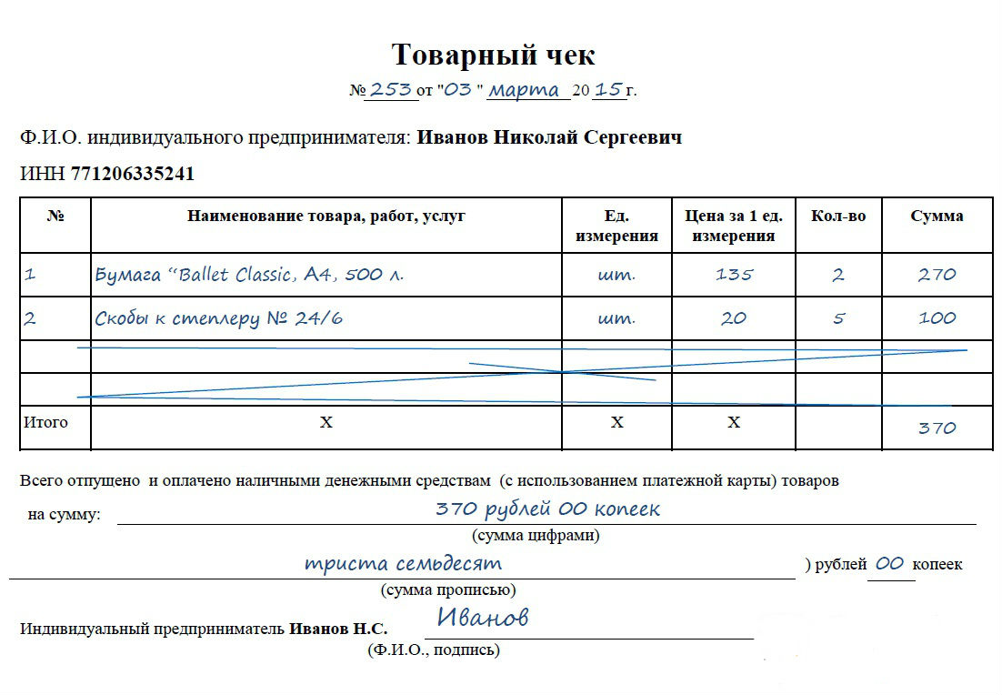 Верхние поля заполняются предприятием своими реквизитами, детализируется сама оплата (сумма, дата, за что, кем внесены деньги). Вместе с тем, глава 25 нк рф не содержит императивной нормы, которая бы устанавливала, что не могут быть приняты к учету первичные документы, имеющие пороки в оф 1 статьи 9 федерального закона от 06. Если в товарном чеке есть все эти данные, расходы по нему организация сумеет.