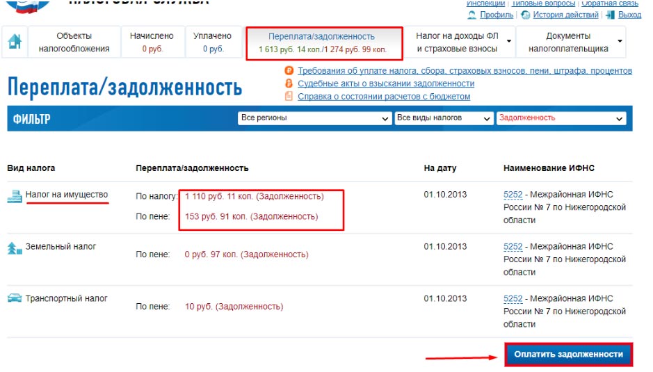 - получать информацию по налоговым долгам, отчислениям и другим проведённым через личный кабинет либо напрямую выплатам в ФНС;
