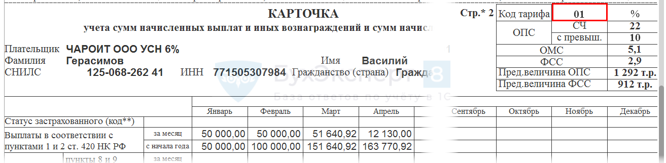 Выплаты, не превышающие МРОТ, код тарифа 01. По общим тарифам (ст. 425 НК РФ).