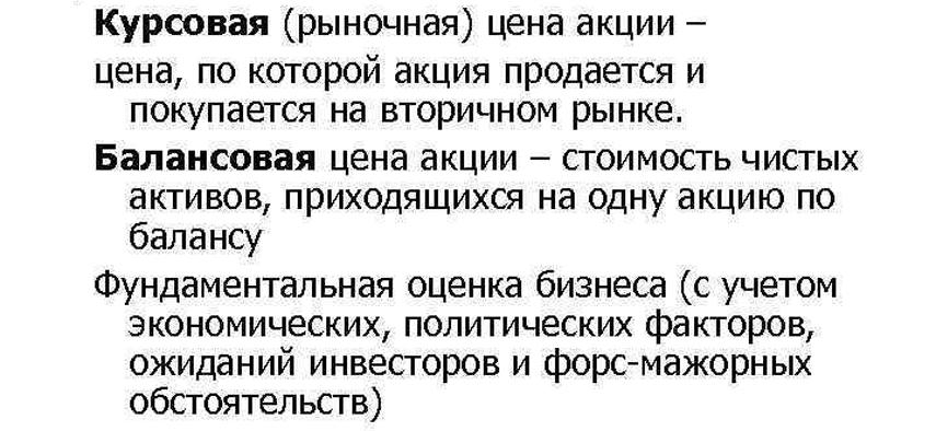 Виды стоимости акций