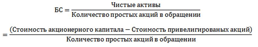 Напомню, что балансовая (или, что то же самое, бухгалтерская) стоимость акции в численном выражении равна отношению объема ЧИСТЫХ активов компании к фактически находящемуся в обращении количеству этих самых обыкновенных (простых) акций.