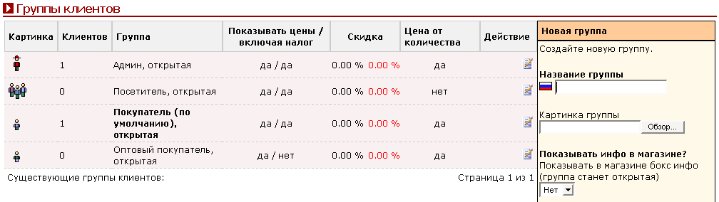 Заходим в Админку — Покупатели — Группы клиентов — рис. 24.