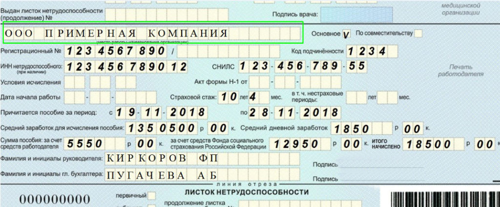 Работнику проще всего — если он сомневается, что фирма действительно называется именно так, как он привык ее именовать, лучше вообще попросить медработника оставить эту графу незаполненной. Директор сам впишет туда полное название черной гелевой ручкой. То же правило действует в случаях, если наименование слишком длинное (от 29 символов) — работник может не знать, как звучит правильный сокращенный вариант, зато это гарантированно знают директор компании и главный бухгалтер. Отказать в принятии листка, если там отсутствует только название фирмы, незаконно.