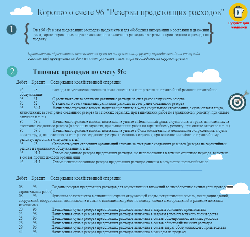 Бухгалтерский счет 96 “Резервы предстоящих расходов”. Проводки