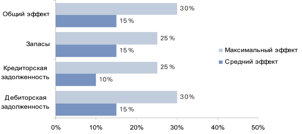 сколько замороженных в операционном цикле денежных средств можно высвободить, не снижая эффективности и не сокращая объема операций?