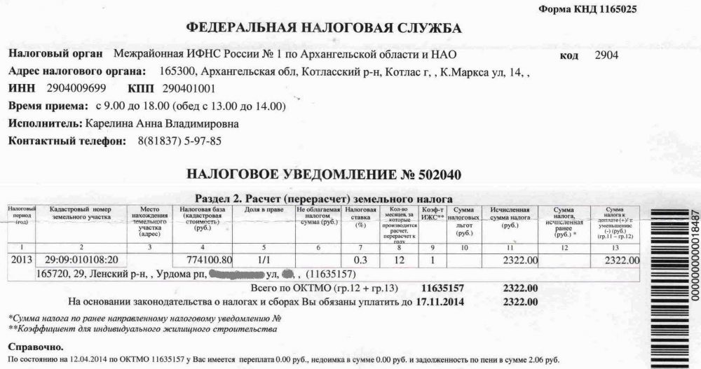 Уведомление высылается частному лицу, которое ответственно за распоряжение наделом земли. Гражданин должен быть совершеннолетним и дееспособным лицом. Но если собственник участка еще не достиг восемнадцати лет, то ответственность за своевременную оплату налогов возлагается на его законных представителей – родителей или опекунов.