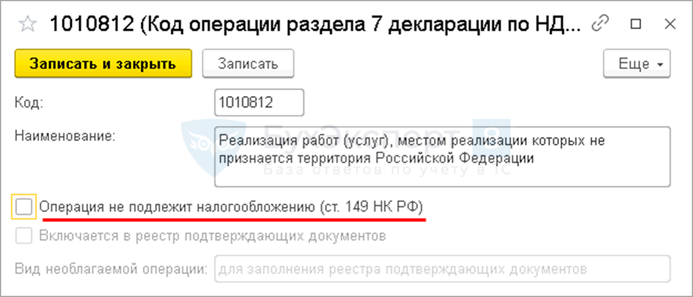Ставим флажок Операция не подлежит налогообложению (ст. 149 НК РФ):