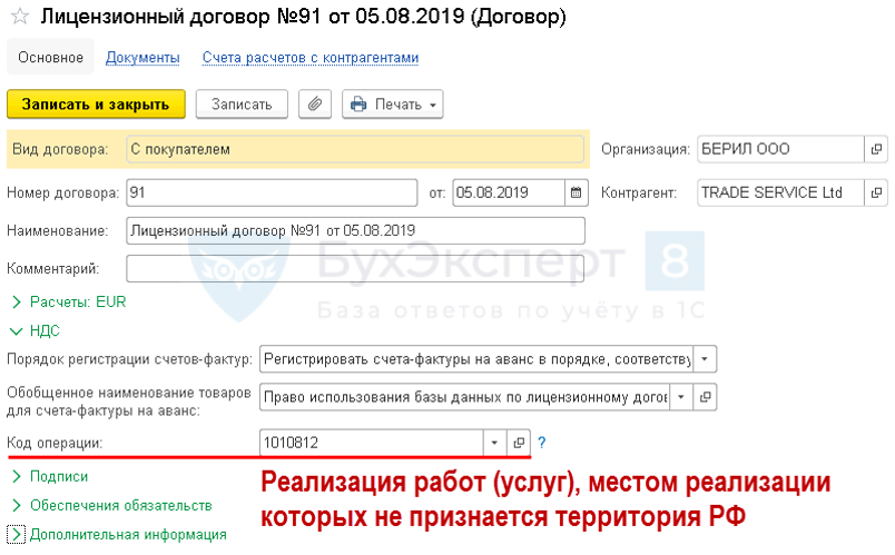 Передача прав на использование базы данных по лицензионному договору заказчику (Италия):