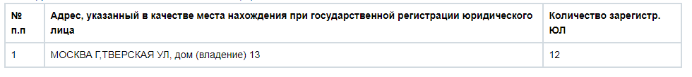 Если мы и сейчас вас не убедили, то просто еще есть несколько примеров. Адрес считается массовым, когда на нем зарегистрировано более 5 компаний. Всего таких адресов по данными налоговой 30179. И в разряд массовых относится, например, адрес Правительства Братска – Тверская 13, или тот же адрес Газпрома является массовым. Но никто же из них не получал данные о том, что у них не правильные данные в ЕГРЮЛ.