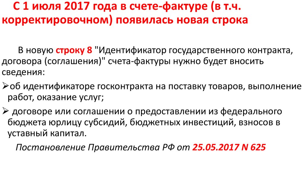 Стоит заметить, что измененная формулировка подпункта 6 пункта 3 статьи 170 НК РФ по-прежнему содержит слова «с учетом налога». Следовательно, если субсидия будет выделена без учета НДС и зачислена на расчетный счет после 01.07.2017, то у налогоплательщика не возникнет обязанности восстанавливать ранее принятые к вычету суммы НДС. Иными словами, с 1 июля 2017 гола избежать обязанности восстановления НДС можно будет только если в документах на выделение субсидии будет сказано, что сумма субсидии не включает в себя НДС.