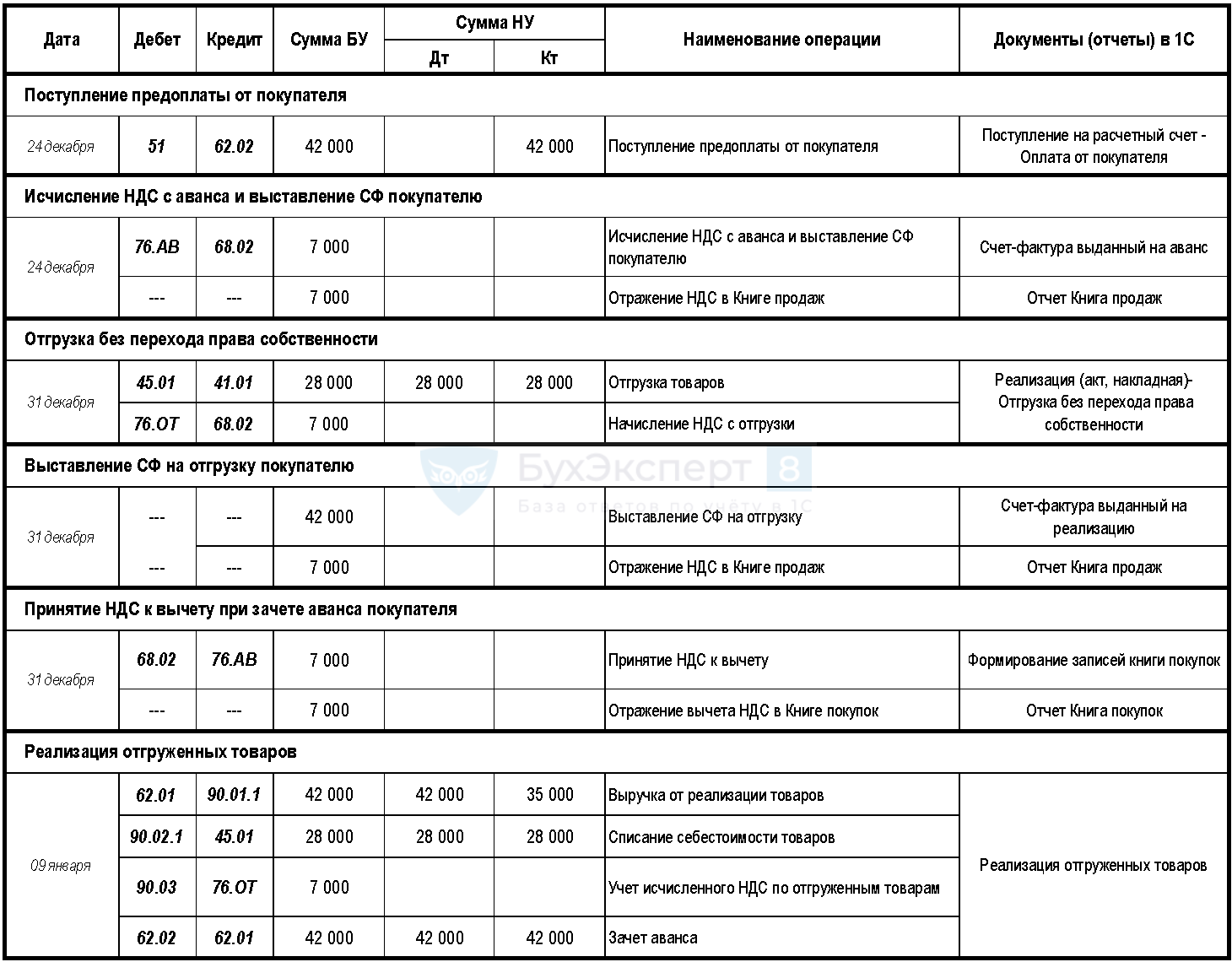 - Дт 45.01 Кт 41.01 — отгрузка товаров без перехода права собственности;