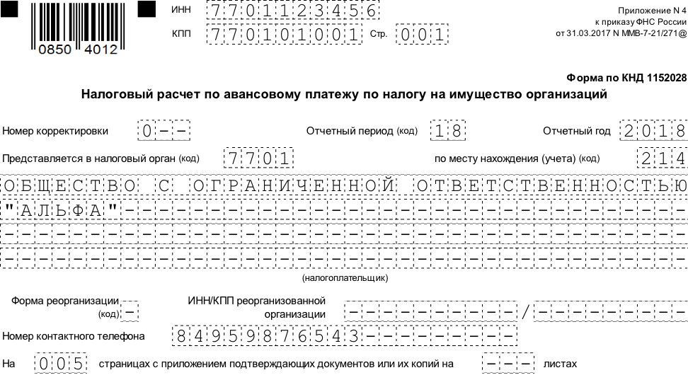 Как заполнить расчет по авансовому платежу по налогу на имущество