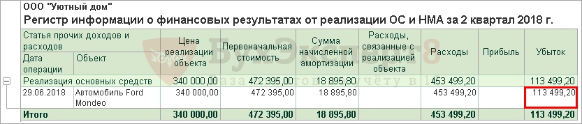 - Сумма — 113 499,20, т.е. сумма убытка по НУ;