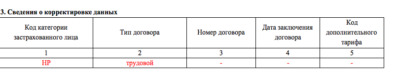 КОРР (корректирующая). Если в отчете СЗВ-КОРР указан тип сведений КОРР, то на индивидуальном лицевом счете застрахованного лица корректируются только данные, указанные в разделах 3 – 6 формы: