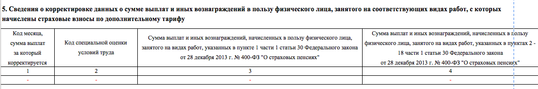 - данные о начисленных и уплаченных страховых взносах (раздел 4) дополняют данные, учтенные на индивидуальном лицевом счете застрахованного лица;