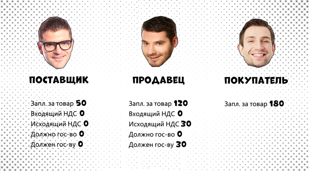 Когда вы продадите конечному покупателю товар, купленный у поставщика, получите исходящий НДС. Эти деньги вы потом должны передать государству.