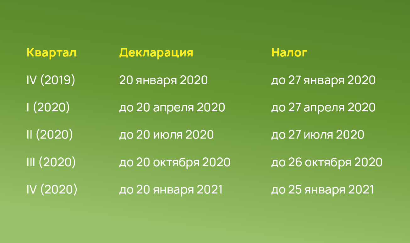 Таким образом, в 2020 году ИП без работников, применяющий вменёнку, должен подать декларацию и уплатить налог в следующие сроки: