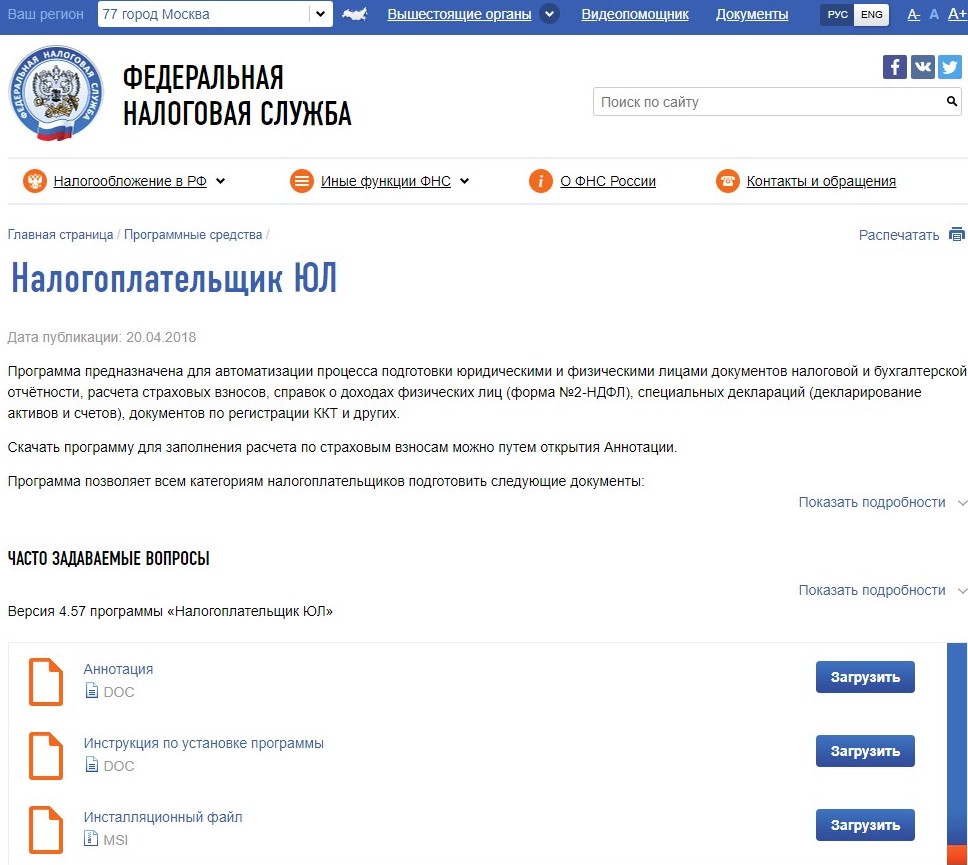 Сервис находится в свободном доступе. Скачать “Налогоплательщик ЮЛ” можно здесь. Сейчас к загрузке доступна последняя версия 4.61.