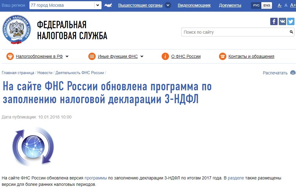 На сайте ФНС было обновлено программное обеспечение программы по заполнению декларации 3-НДФЛ. В личном кабинете налогоплательщика доступна функция для заполнения налоговой декларации и отправки ее в налоговый орган.