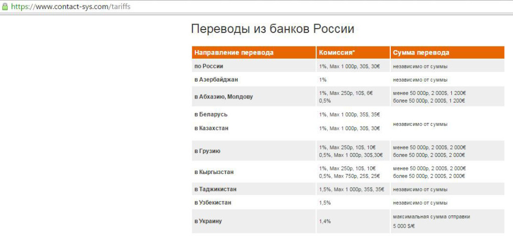 Правда, комиссия за такой сервис для дальнего зарубежья будет выше (от 3%), чем при переводе по системе SWIFT. В страны ближнего зарубежья валютный перевод через Contact или Western Union будет не таким дорогим. Вот, например, тарифы системы Contact: