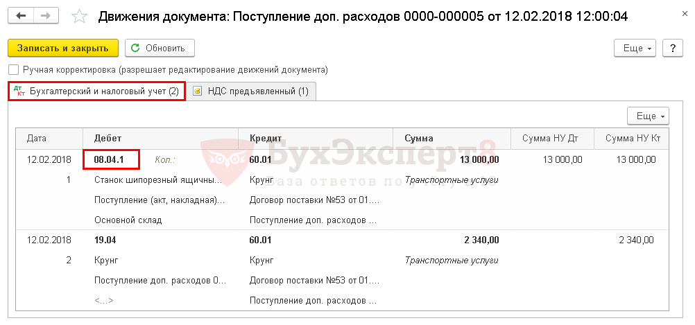 - Дт 08.04.1 Кт 60.01 — учет затрат на услуги по доставке в стоимости внеоборотного актива.