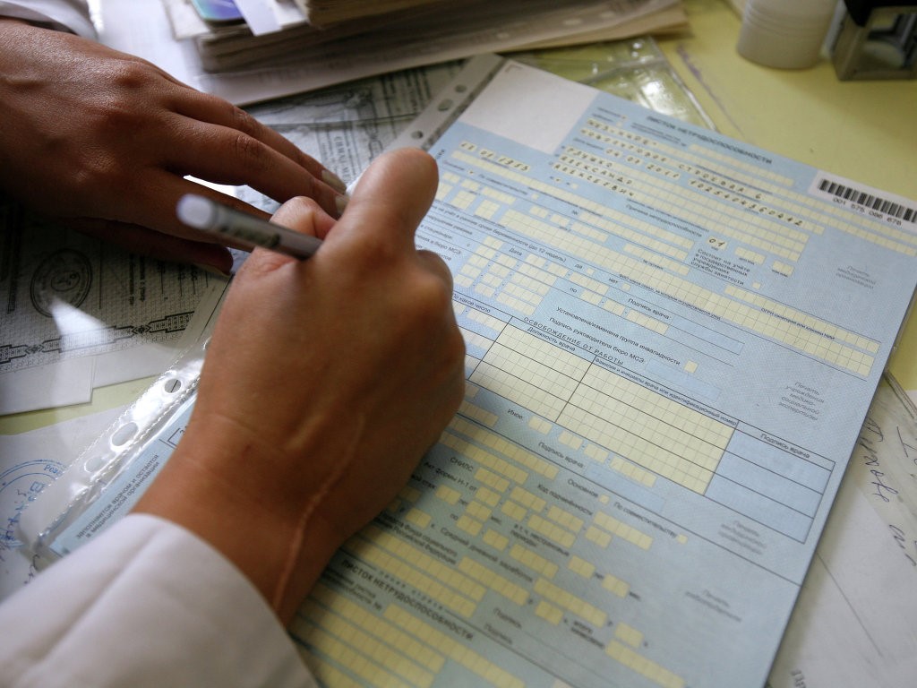 Врач заполняет больничный