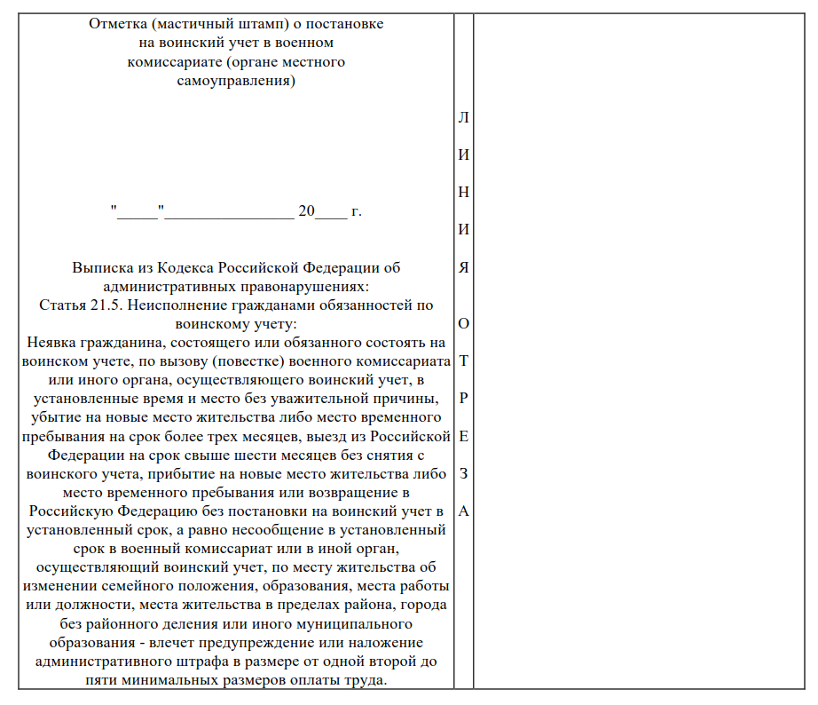 Несообщение руководителем или другим ответственным за военно-учетную работу должностным лицом организации в военный комиссариат или в иной орган, осуществляющий воинский учет, сведений о принятых на работу (учебу) либо об уволенных с работы (отчисленных из образовательных организаций) гражданах, состоящих или обязанных состоять, но не состоящих на воинском учете, — влечет наложение административного штрафа в размере от 1 000 до 5 000 руб.